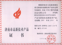 濟南高新技術產品證書